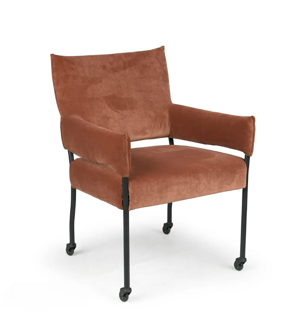 De Chill-Line stoel Imke is een moderne eetkamerstoel met open armleuningen die zorgen voor een luchtige uitstraling én comfortabele ondersteuning. Dankzij het nosag-veersysteem en koudschuim/polyether vulling biedt Imke langdurig zitcomfort, ideaal voor een avond tafelen. U kiest uit een brede collectie luxe stoffen en leersoorten en kunt de metalen poot optioneel voorzien van zwarte skatewieltjes voor extra gebruiksgemak. Voor wie meer ruimte zoekt, is er ook een Large-uitvoering die 5 cm breder is.
