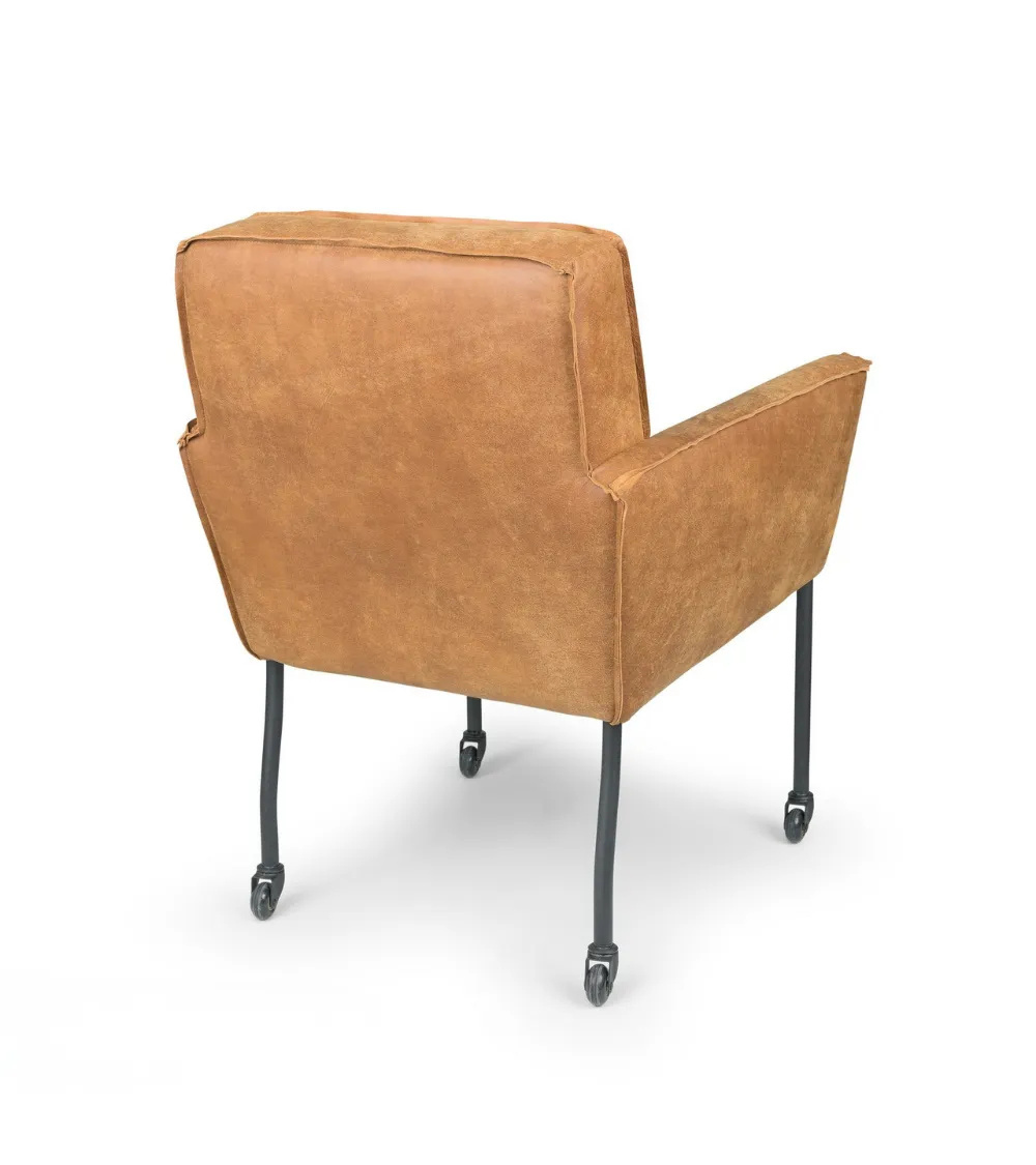 De Chill-Line stoel Sara heeft een stoere industriële uitstraling en biedt dankzij de robuuste vorm en armleuningen optimaal zitcomfort. Leverbaar in diverse stoffen en leersoorten en volledig samen te stellen met verschillende voetopties, past Sara moeiteloos in uiteenlopende interieurs. Deze veelzijdige serie is bovendien verkrijgbaar met of zonder armleuningen, én als eetbank of barkruk. De standaarduitvoering is voorzien van een kapnaad, zwarte metalen poten en skatewieltjes voor praktisch gebruiksgemak.