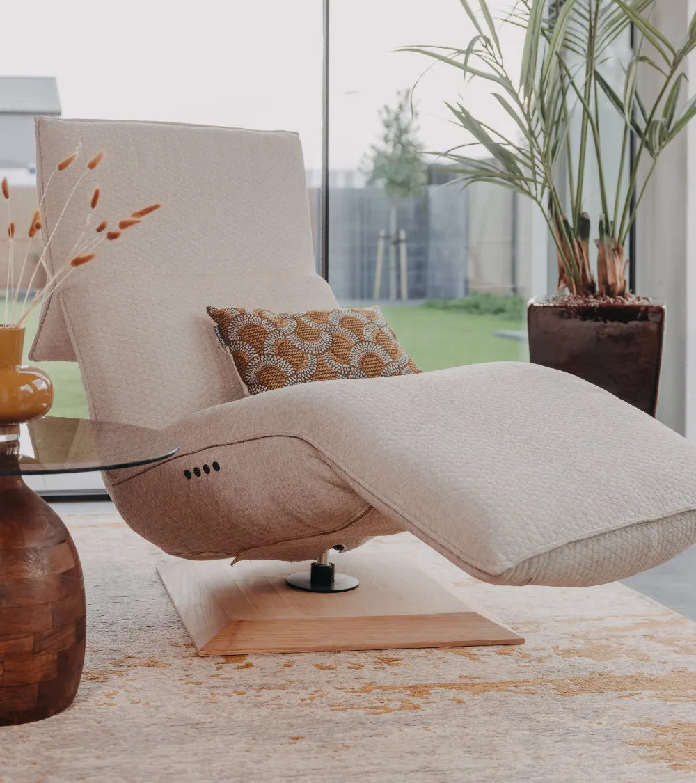 De Chill-Line relaxfauteuil Sascha combineert modern design met verrassend loungecomfort. Handgemaakt in Nederland en leverbaar in hoogwaardige stoffen en leersoorten, kiest u uit diverse voetopties voor een persoonlijke afwerking. Dankzij de unieke inklapbare rugleuning ervaart u extra ontspanning, terwijl de gasveer- of optionele Duomotor-uitvoering u volledige controle biedt over rug- en beenverstelling. Voor extra comfort kan Sascha worden uitgebreid met verwarming en lendekussen. Zo past deze stijlvolle fauteuil zich volledig aan uw interieur en wensen aan.