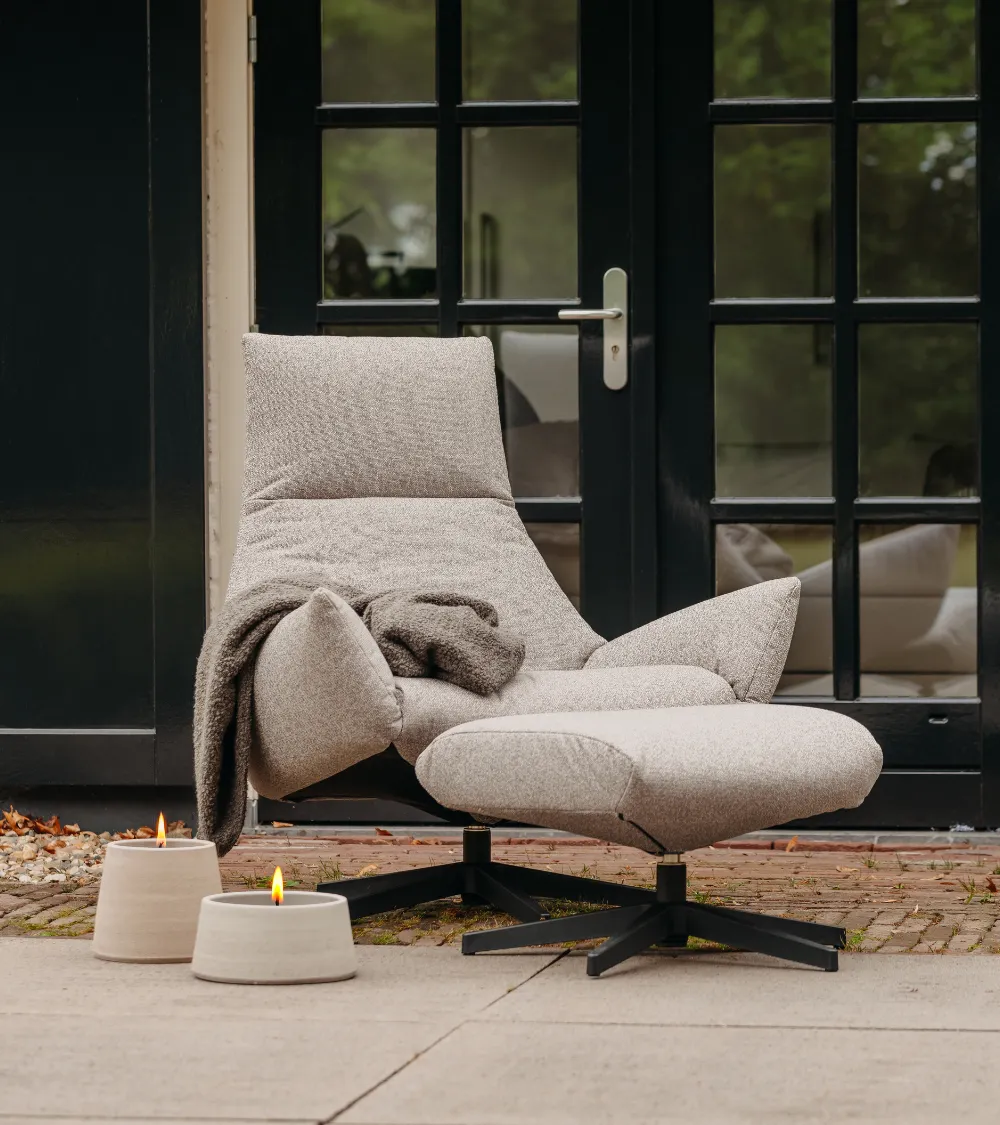 De Chill-Line fauteuil Wim Outdoor combineert een hoge rug en elegante vormgeving met hoogwaardig zitcomfort. Ideaal om te ontspannen in de tuin, op het terras of onder de veranda. Leverbaar in diverse weerbestendige stoffen, leersoorten en onderstellen stelt u Wim volledig naar wens samen. Voor extra gemak kan de fauteuil worden uitgebreid met een kantelsysteem, lendekussen en bijpassende hocker. Zo geniet u van duurzaam comfort en tijdloze stijl in elke buitenruimte.